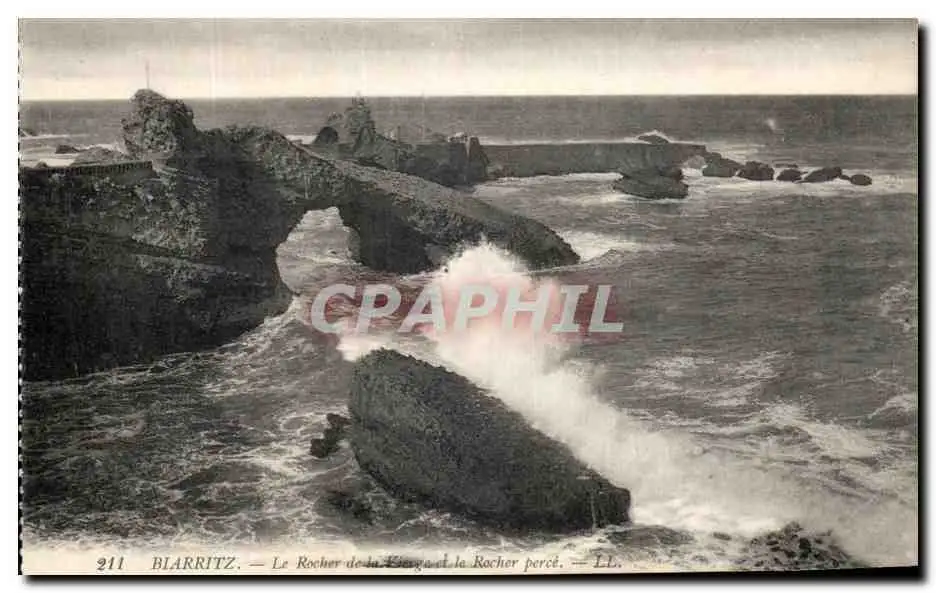 Cartes postales Biarritz La Rocher de la vierge et le Rocher perce