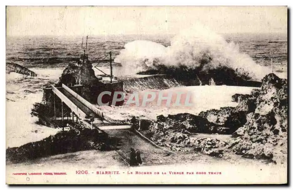 Cartes postales Biarritz Le Rocher de la vierge par gros temps