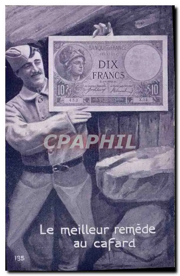 Cartes postales Billet Dix Francs Soldat Militaria Le meilleur remede au cafard