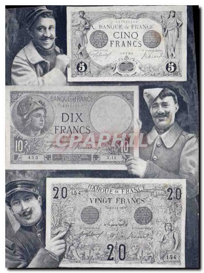 Cartes postales Billets Cinq Francs Dix Francs Vingt Francs