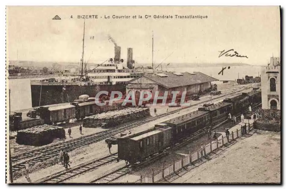 Cartes postales Bizerte Le Courrier Et La Cie Generale Transatiantique Bateau