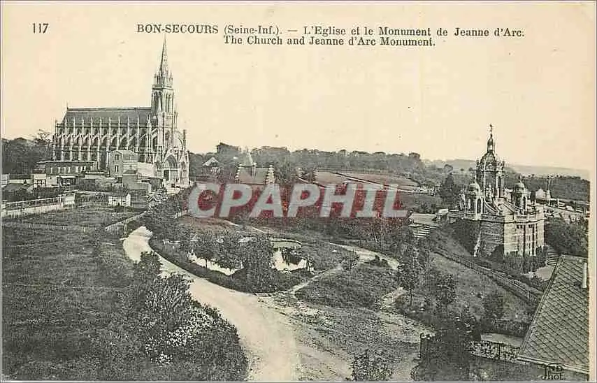 Cartes postales Bon Secours (Seine Inf) L'Eglise et le Monument de Jeanne d'Arc
