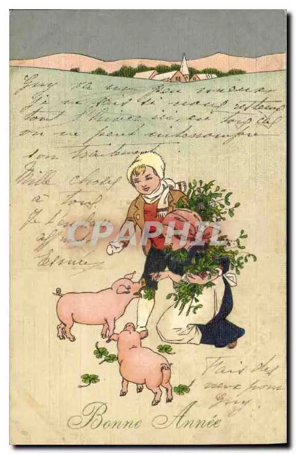 Cartes postales Bonne Annee Cochons Porcs