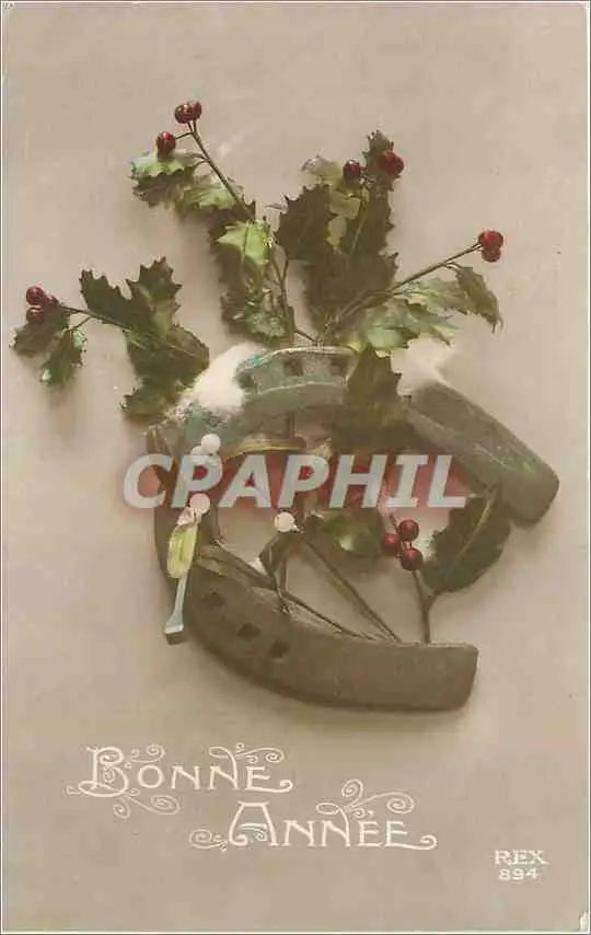 Cartes postales Bonne Annee Fer a cheval Fleurs