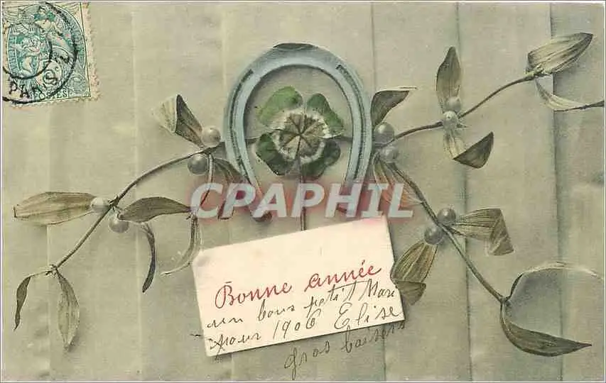 Cartes postales Bonne Annee Fleurs Fer a cheval