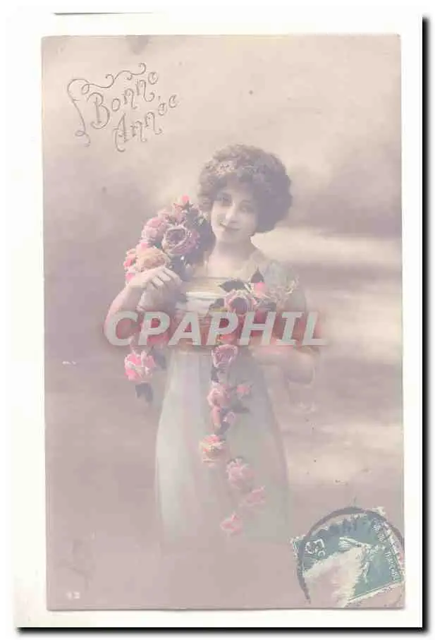 Cartes postales Bonne Annee (femme fleurs voeux) Fantaisie