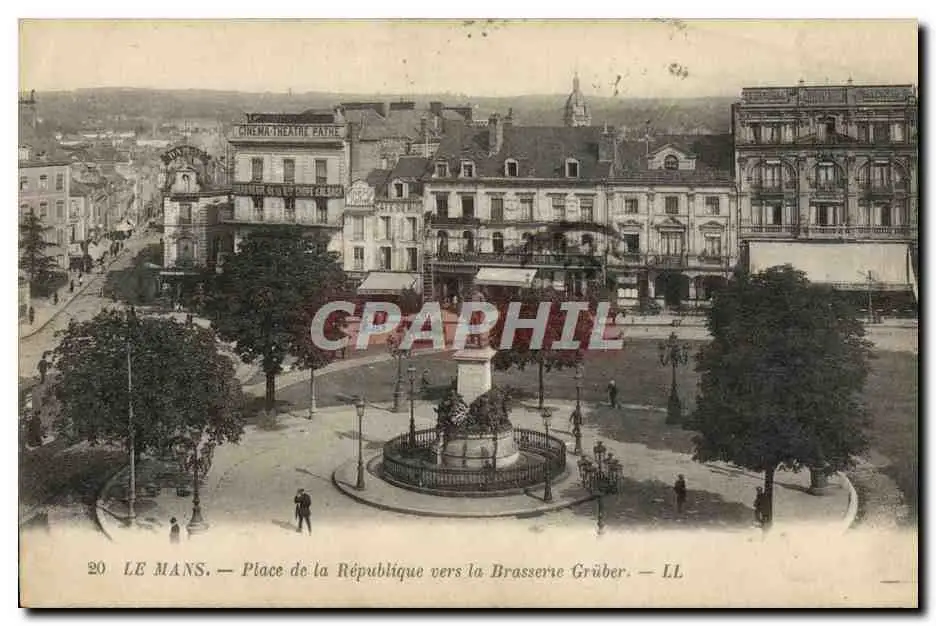 Cartes postales Brasserie Le Mans Place de la Republique vers la brasserie Gruber