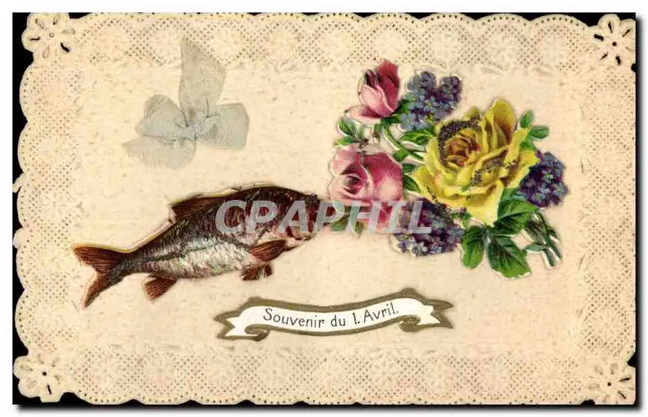 Cartes postales Brodee Fantaisie Fleurs Poisson