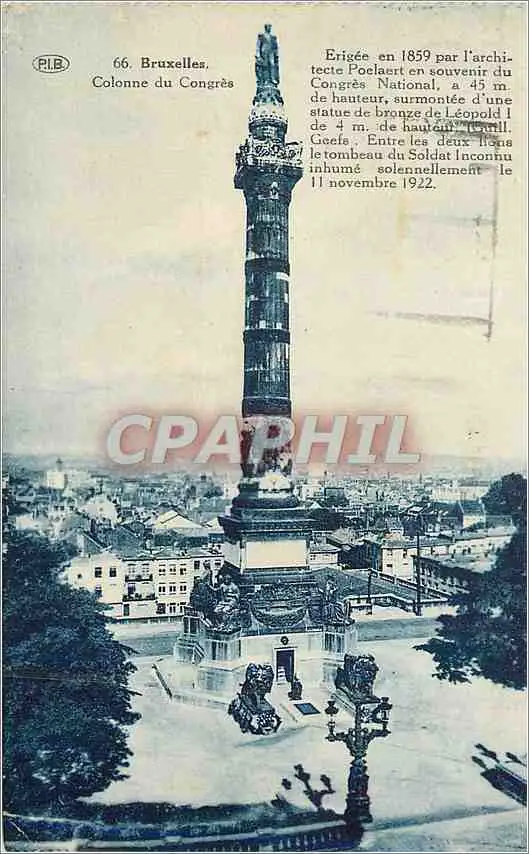 Cartes postales Bruxelles Colonne du Congres Erigee en 1859 par l'Architecte Poelaert en Souvenir du Congres Nat