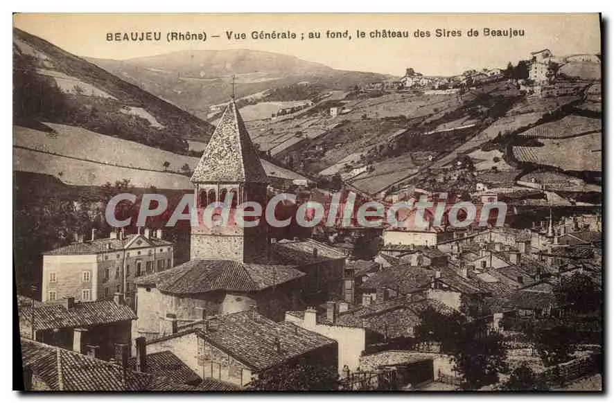 Cartes postales Bueaujeu Rhone Vue Generale au fond le chateau des Sires de Beaujeu