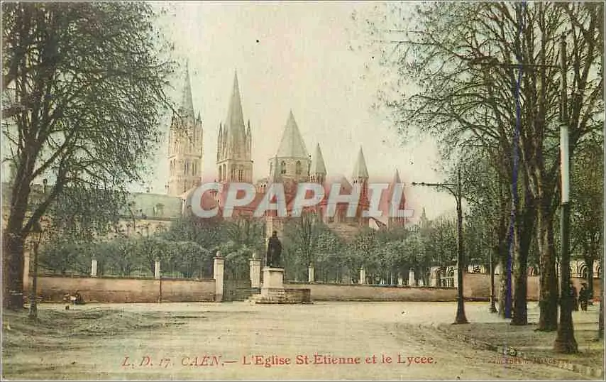 Cartes postales Caen l'Eglise St Etienne et le Lycee