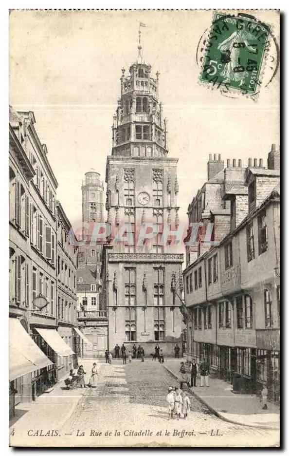 Cartes postales Calais La Rue de la Citadelle et le Beffroi