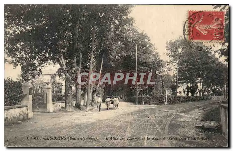 Cartes postales Cambo les Bains L&#39allee des Thermes et la route de Saint Jean de port ( char a boeufs )