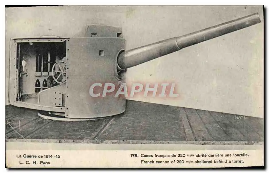 Cartes postales Canon de 220 mm derriere une tourelle Militaria