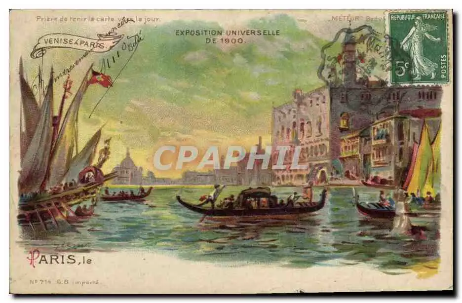 Cartes postales Carte Transparente Paris Exposition Universelle 1900 Venise a Paris Bateau