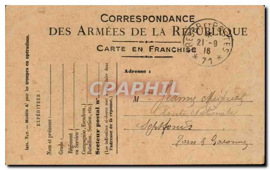 Cartes postales Carte en Franchise Militaire Miguel Septfonds