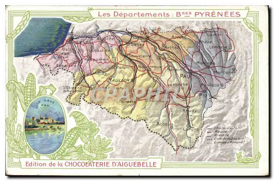 Cartes postales Carte geographique Chocolaterie d'Aiguebelle Basses Pyrenees