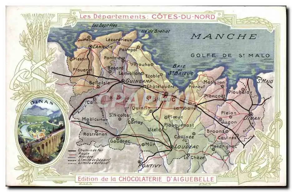 Cartes postales Carte geographique Chocolaterie d&#39Aiguebelle Cotes du Nord