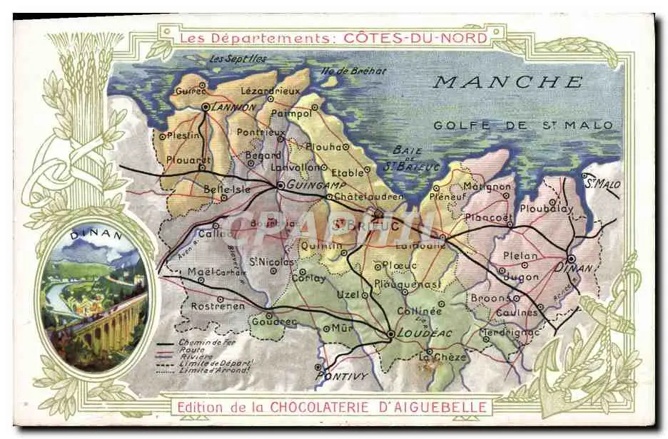 Cartes postales Carte geographique Chocolaterie d&#39Aiguebelle Cotes du Nord
