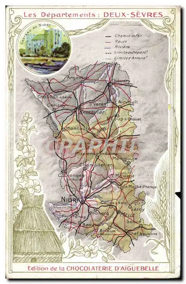 Cartes postales Carte geographique Chocolaterie d'Aiguebelle Deux Sevres