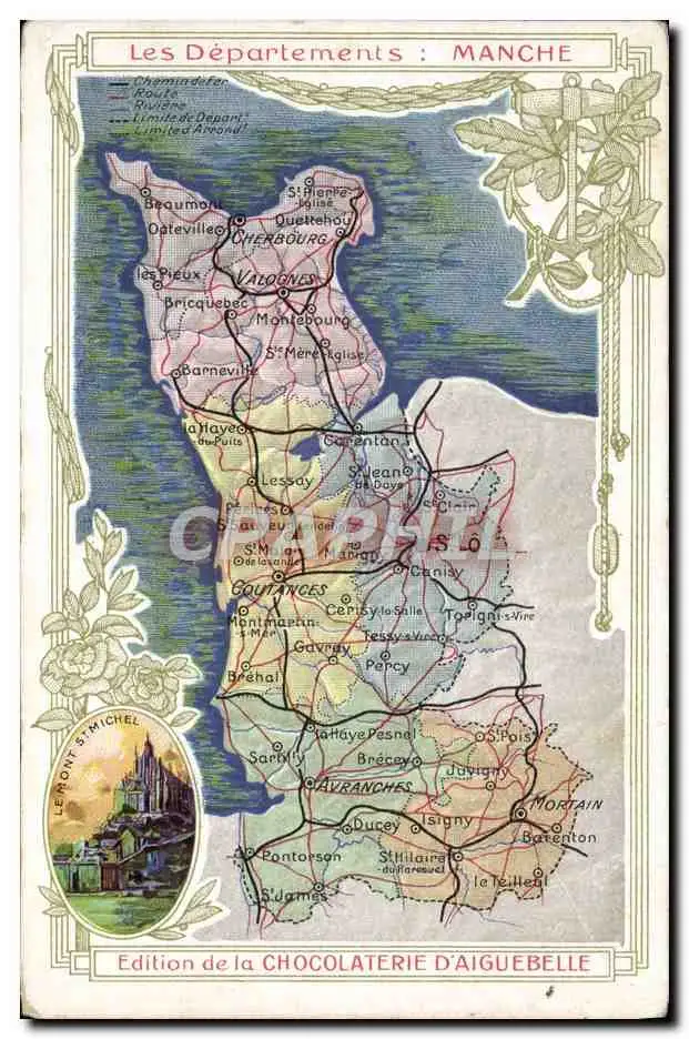 Cartes postales Carte geographique Chocolaterie d'Aiguebelle Manche