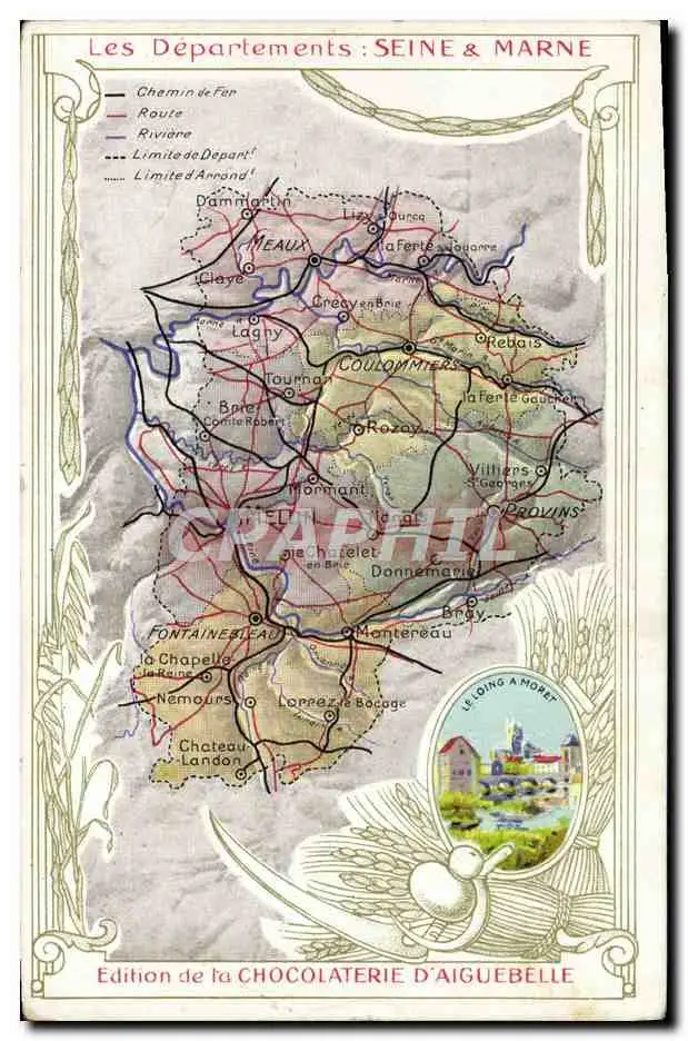 Cartes postales Carte geographique Chocolaterie d&#39Aiguebelle Seine & Marne Le Loing a Moret