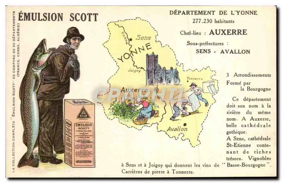 Cartes postales Carte geographique Emulsion Scott Yonne Auxerre Poisson