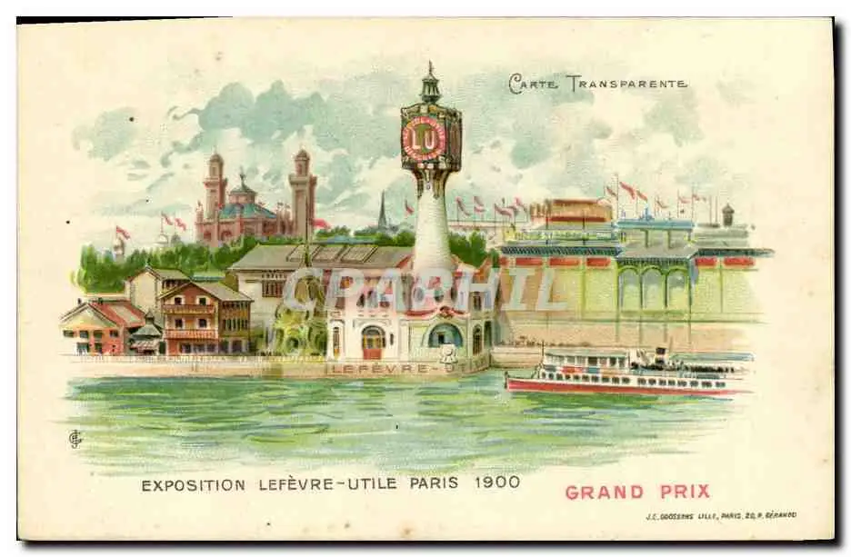 Cartes postales Carte transparente Paris Exposition Lefevre Utile Paris 1900 Grand Prix Peniche Bateau