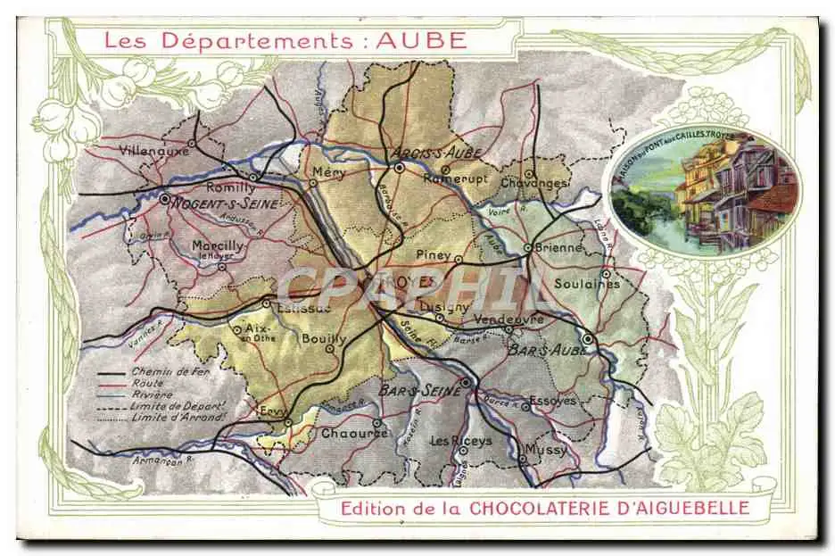 Cartes postales Cartes Geographiques Chocolaterie d'Aiguebelle Aube Pont aux Cailles Troyes