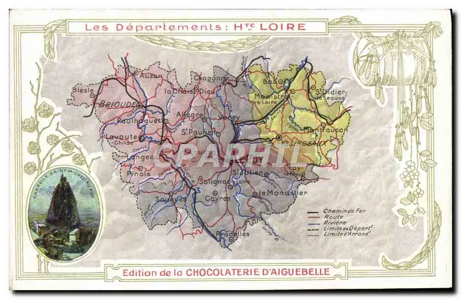 Cartes postales Cartes Geographiques Chocolaterie d'Aiguebelle Haute Loire Chapelle de Saint Michel au Puy