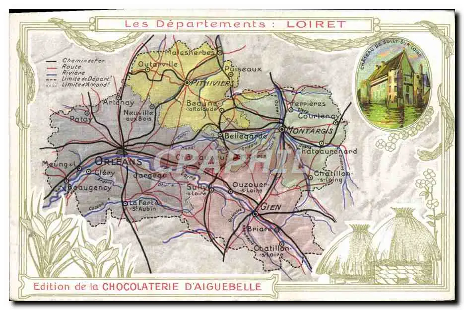 Cartes postales Cartes Geographiques Chocolaterie d'Aiguebelle Loiret Sully sur Loire