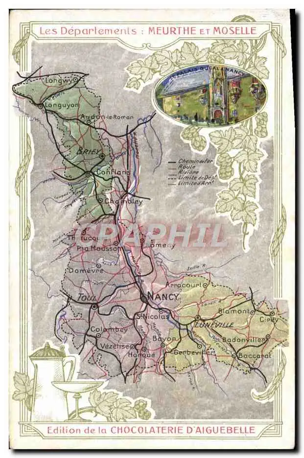 Cartes postales Cartes Geographiques Chocolaterie d'Aiguebelle Meurthe et Moselle Nancy