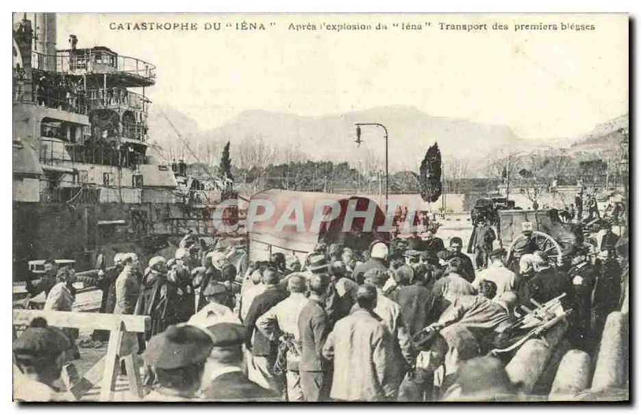 Cartes postales Catastrophe Du Iena Apres L explosion du Iena Toulon Transport des premiers blesses
