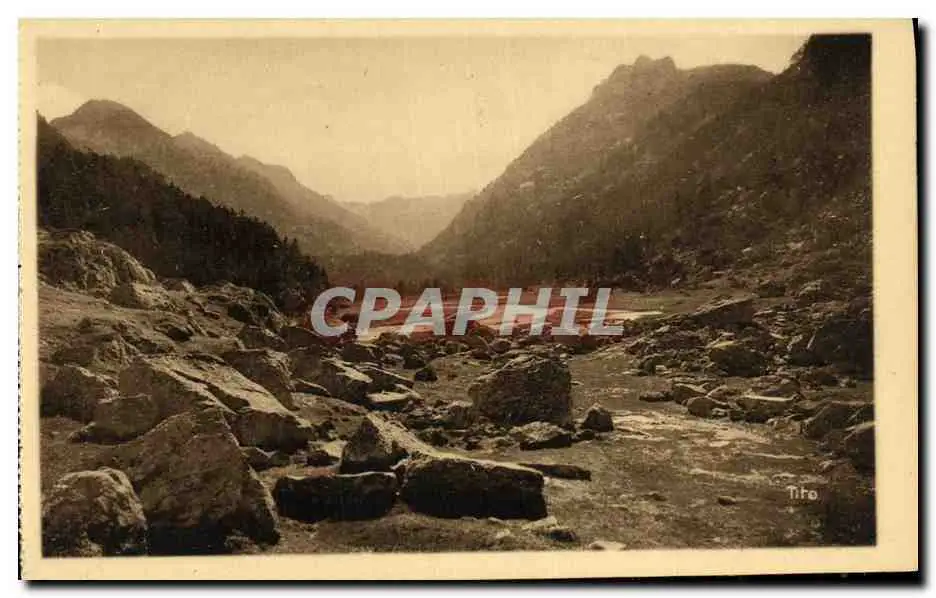 Cartes postales Cauterets Chemin du Marcadau Vue sur le fond de la vallee le Gave Contre jour
