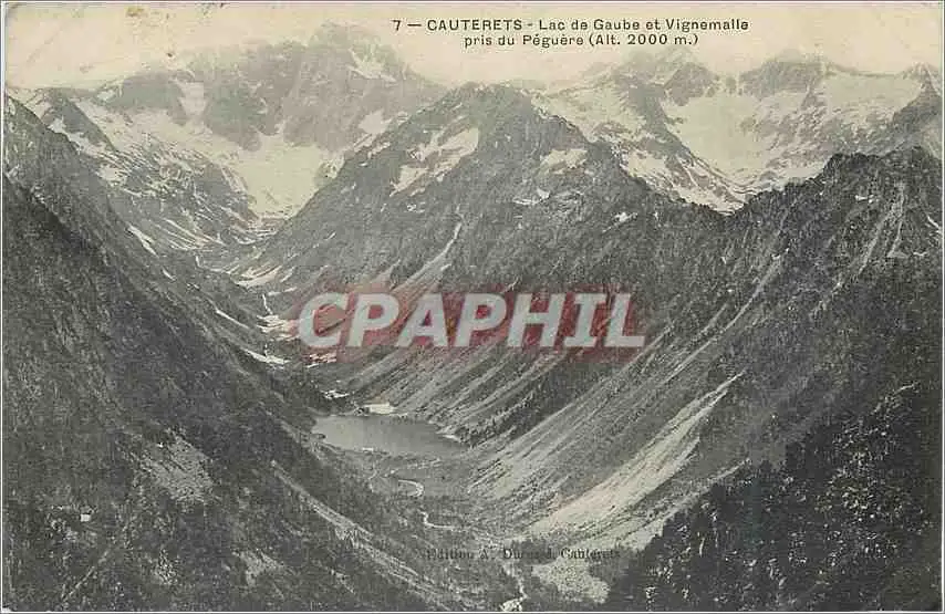 Cartes postales Cauterets Lac de Gaube et Vignemalle prise du Peguere (Alt 2000 m)