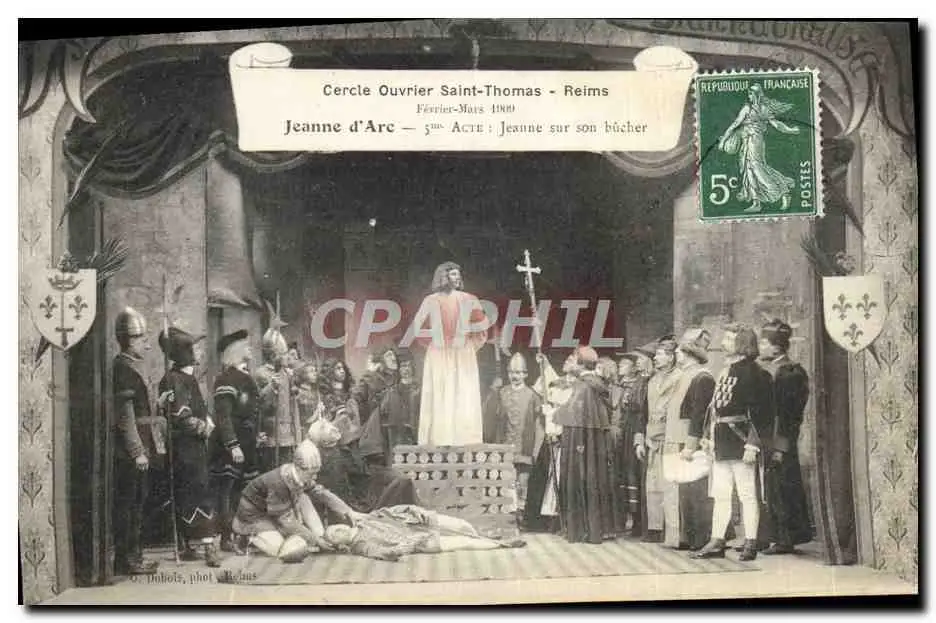 Cartes postales Cercle ouvrier Saint Thomas Reims 1909 Jeanne d'Arc Jeanne sur son bucher