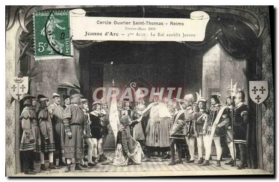 Cartes postales Cercle ouvrier Saint Thomas Reims 1909 Jeanne d'Arc Le roi anoblit la reine