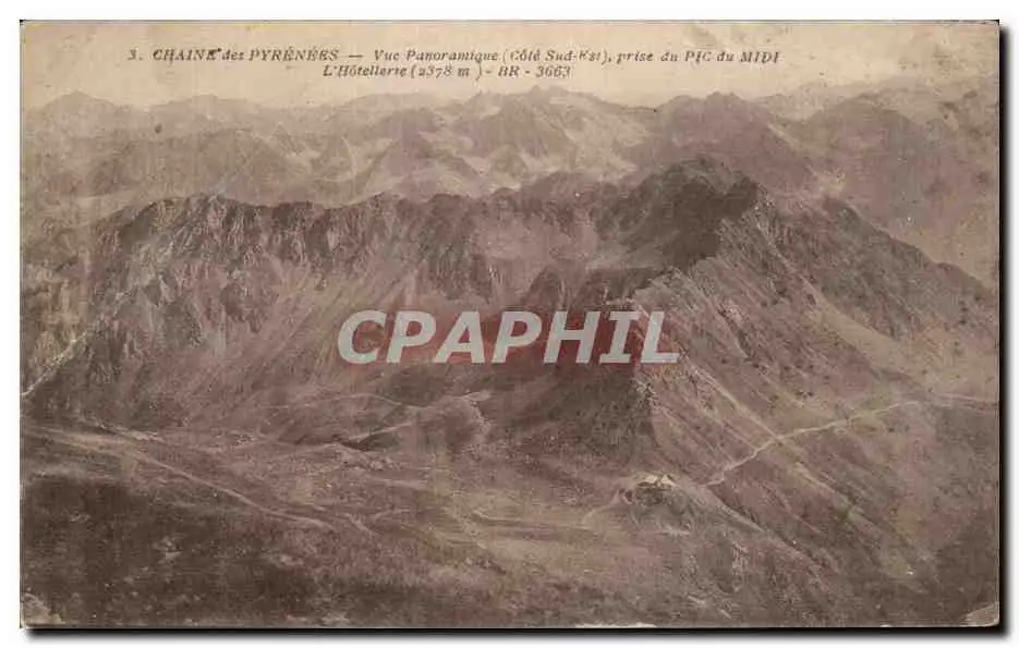 Cartes postales Chaine des Pyrenees Vue panoramique prise du pic du Midi L hotellerie