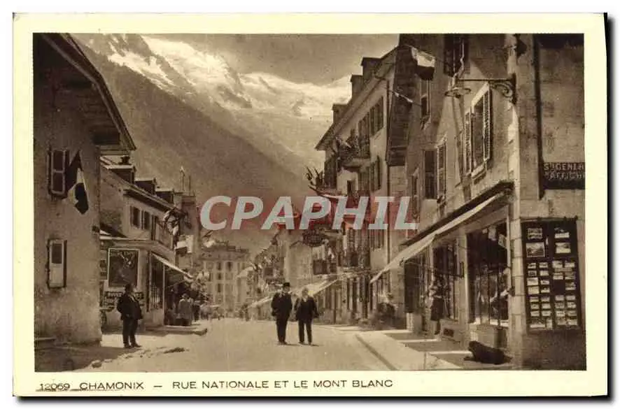 Cartes postales Chamonix Rue Nationale et le mont Blanc
