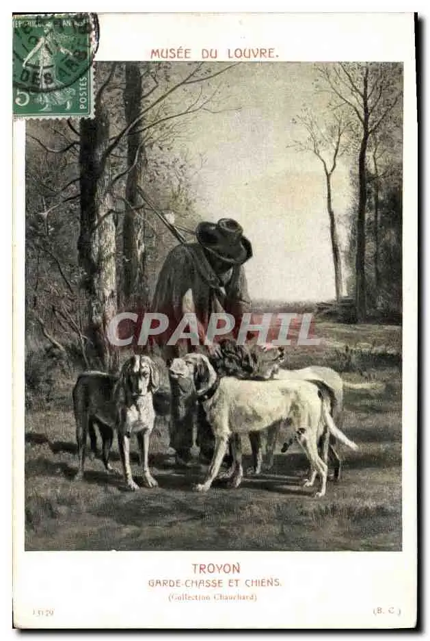 Cartes postales Chasse Chasseur Musee du Louvre Paris Troyon Garde chasse et chiens Chauchard