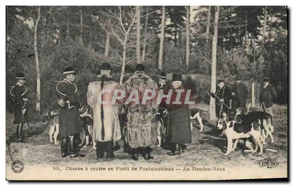 Cartes postales Chasse Chien Chiens Chasse a courre en foret de Fontainebleau Au rendez vous TOP