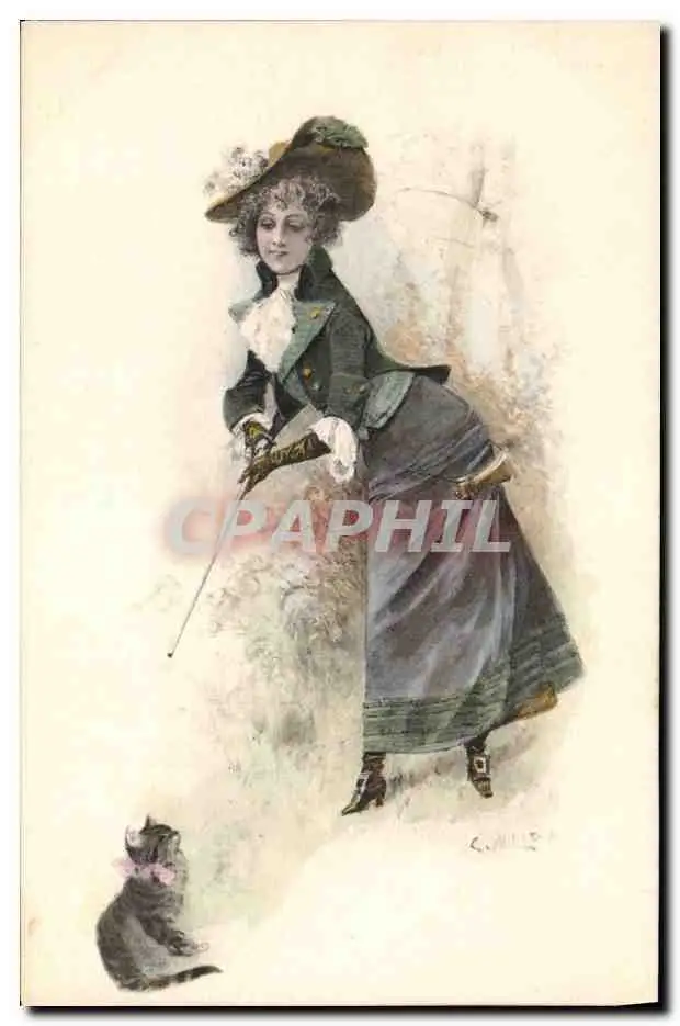 Cartes postales Chasse Femme Chien