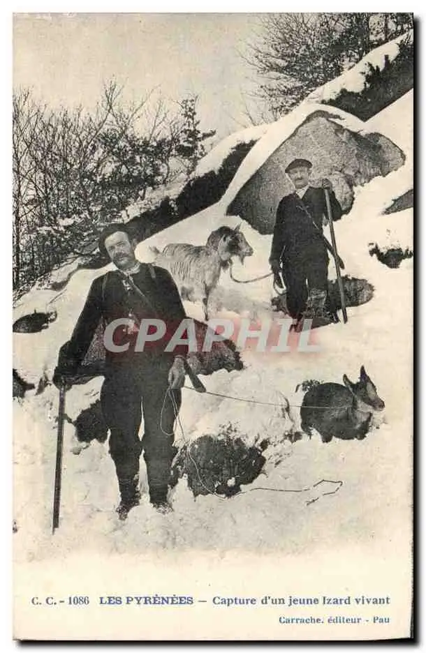 Cartes postales Chasse Pyrenees Capture d'un jeune izard vivant Chevre TOP