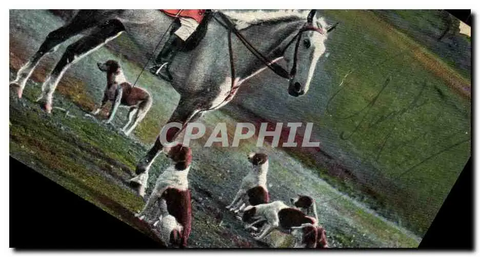 Cartes postales Chasse a courre Cavalier Cheval Chiens Chien
