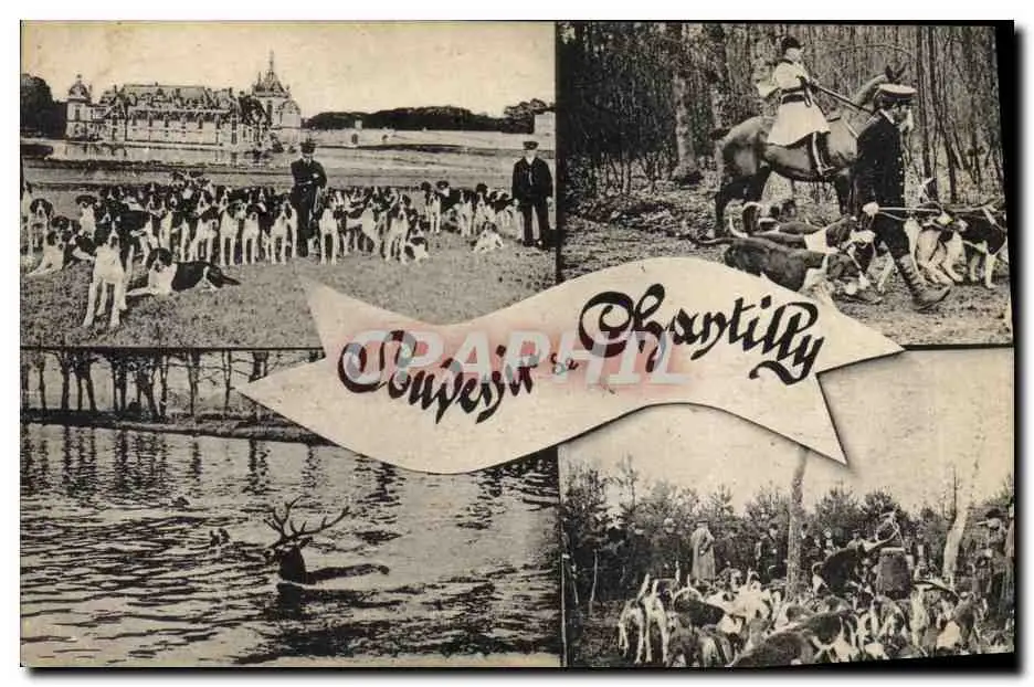 Cartes postales Chasse a courre Chantilly Chiens Chien