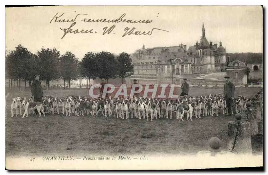 Cartes postales Chasse a courre Chantilly Promenade de la meute Chiens Chien