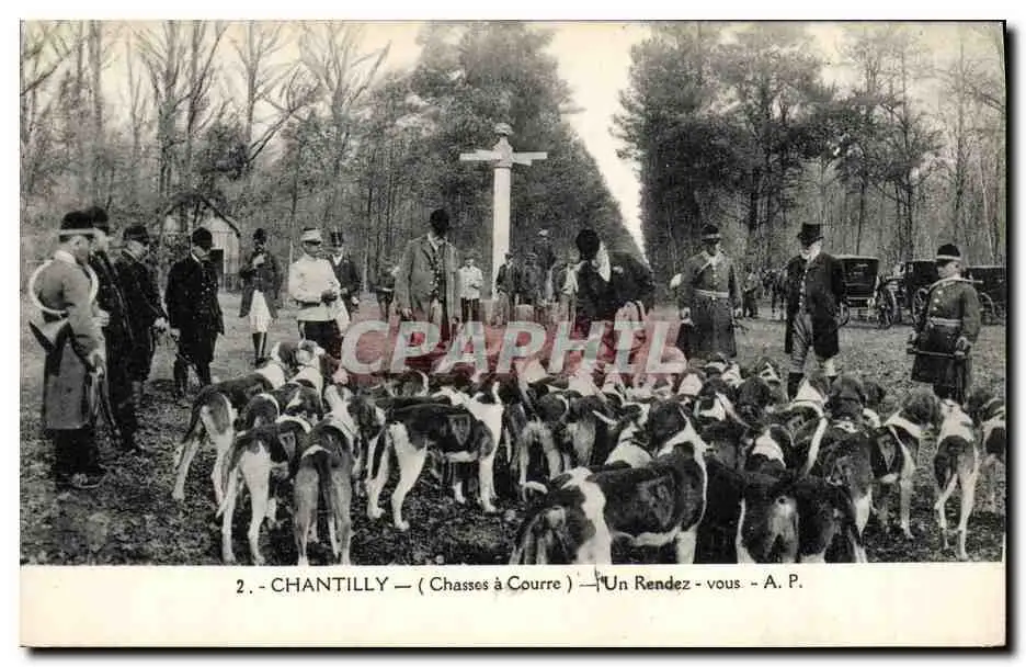 Cartes postales Chasse a courre Chantilly Un rendez vous Chiens Chien