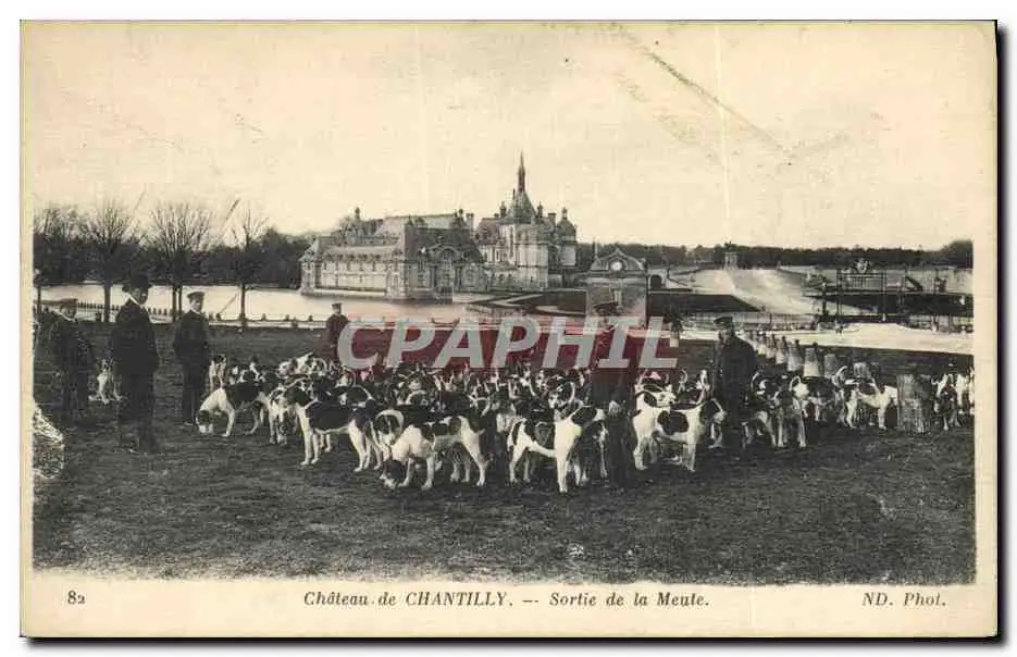 Cartes postales Chasse a courre Chateau de Chantilly Sortie de la meute Chiens Chien