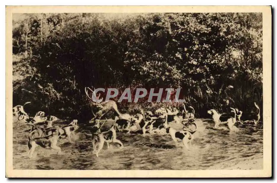 Cartes postales Chasse a courre Cheverny Bat l'eau Chien Chiens