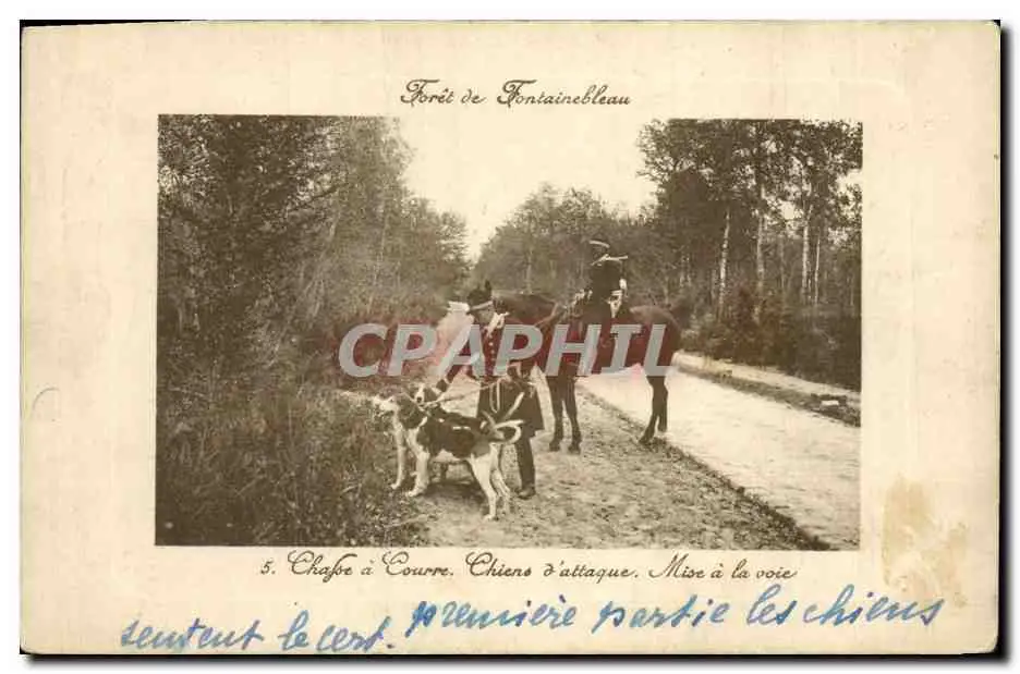 Cartes postales Chasse a courre Foret de Fontainebleau Chiens d&#39attaque Mise a la voie Chien Chiens